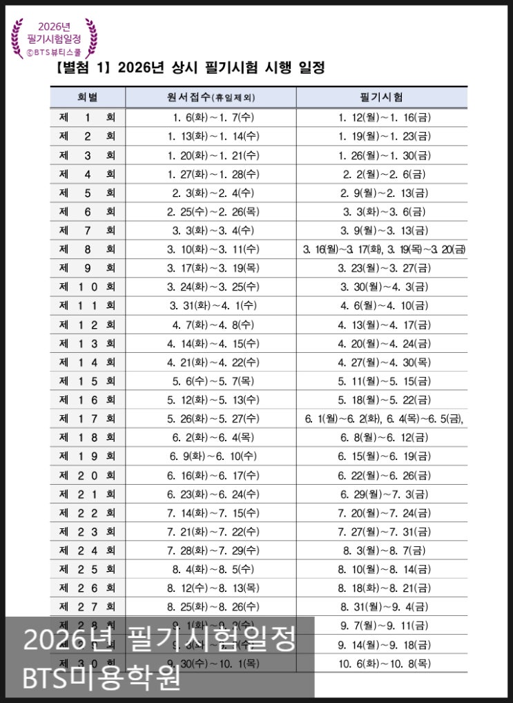 2026 미용사 국가자격시험 완전 정리!응시자격· 주의사항까지 파주미용학원에서 알려드립니다 국가자격시험 핵심 체크리스트 ✔ 원서접수 시간·절차 ✔ 응시자격 정보 정확 입력 ✔ 시험 당일 신분증 + 수험표 ✔ 입실 시간 엄수 ✔ 실기시험 안전 수칙 & 복장 ✔ 필기 합격 면제 기간 관리 ✔ 공지사항 주기적 확인 2026년도 미용사 상시시험 정리 상시시험(상시검정) 미용사 자격시험 (일반, 피부, 네일, 메이크업 모두 해당)은 연중 원하는 날짜·장소에서 응시 가능한 ‘상시시험’으로 시행됩니다 즉, 시험 일정이 정해진 몇 번만 보는 게 아니라, 회차별로 상시 (매주 또는 정기적 간격) 시행되고 접수 가능하다는 의미입니다 시험일, 시....... <img src="https://blogthumb.pstatic.net/MjAyNjAxMTNfMjMz/MDAxNzY4Mjg2NzEyNDk0.MdtHarn3a4uDggq7UZY-HJnd68bw62VPHOfVz2XPtxIg.6WVKVQmpdfdFur6Hoqe0rqF-LFJJp_C8ip-CIrDJbmkg.JPEG/%BD%BA%C5%A9%B8%B0%BC%A6_13-1-2026_12749_.jpeg?type=s3" />