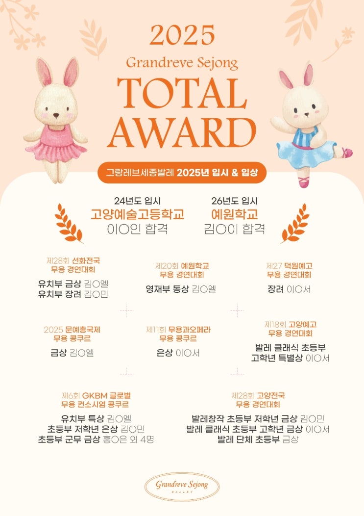 [운정발레] 2025 그랑레브세종발레 입시 실적