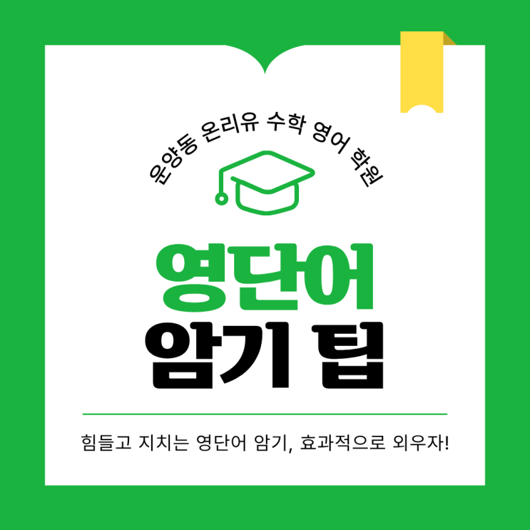 안녕하세요~ 온리유 학원입니다! 단어 외우기 귀찮아하고 힘들어하는 아이들 많죠? 그렇지만 기초를 쌓기 위해 단어는 꼭 해야 해요. 그저 단어 시험만을 위한 단순 암기에서 벗어나서, 오래 기억되는 단어 암기 방법을 알려드릴게요! 1) 하루 30개, 3번 반복하기 가장 큰 실수는 하루에 너무 많은 단어를 외우려고 하는 거예요. 장기 기억에 가지 못하고 단순 암기로 남게 되죠. 30개씩 차근차근 외우세요. 뇌과학 연구에 따르면, 같은 정보를 최소 3번 이상 반복해야 장기 기억으로 전환된다고 해요. 3회독을 통해 오래 기억할 수 있도록 해주세요. 2) 예문으로 학습하기 예문으로 암기하면 생각보다 쉬워요. 단어만 외우면 시험 볼 때 "어....... <img src="https://blogthumb.pstatic.net/MjAyNjAxMTZfMTUz/MDAxNzY4NTQzNTYwNzk1.mkI0FNi_tQE-UTpU-DXRIwGGC4xA0y0jTTlkrJn06nIg.wFiUbmLLy1E21SBIJ0FoGbpv0yVEKeV0d0gvmytJX5og.PNG/image.png?type=s3" />