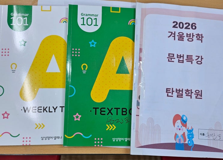 안녕하세요! 삼성영어 셀레나 탄벌학원입니다. 어느새 겨울방학이 끝나고 새학기가 시작됐네요. 저희 삼성영어셀레나탄벌학원에서는 겨울방학동안 탄탄한 문법의 기초를 위해 문법특강을 진행했습니다. 이번 특강은 기초부터 확실하게 잡는 Grammar 101교재로 개념 정리 + 문제 적용 오답 반복 훈련 Weekly Test로 실력 점검 형식으로 진행되었습니다. 개념 이해 수업 ! 저희 삼성영어 문법은 단순히 문제만 많이 푸는 수업이 아니라 개념을 ‘이해’하는 문법 수업입니다. will / be going to 같은 헷갈리는 미래시제도 “언제 쓰는지”, “왜 그렇게 쓰는지”를 이해하도록 지도합니다. 개념을 정확히 알고 나면 아이들 표정이 달라집니다 . 오....... <img src="https://blogthumb.pstatic.net/MjAyNjAzMDNfMjc5/MDAxNzcyNTEyMzA1Njc1.lgbYyudGBfrnmkaHhLTsWFsXyelK--6KNmcTP1LoSWkg.FRbDlDB7Dr_sb80A925TWTgMrfDNzxKpplCoWGRcXzog.JPEG/%B9%AE%B9%FD%C6%AF%B0%AD_1.jpg?type=s3" />