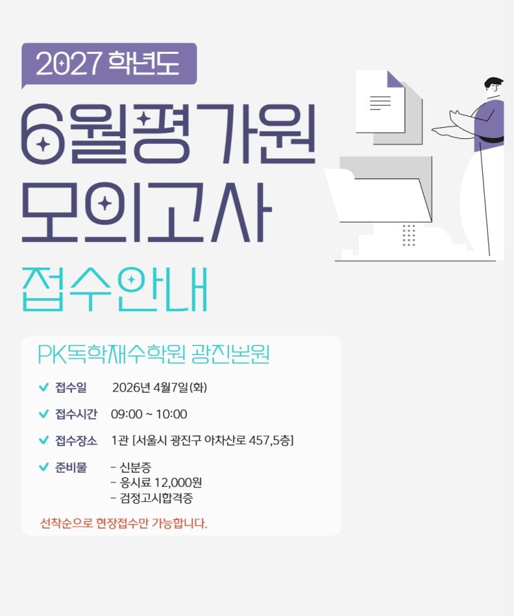 [광진구 독학재수학원] 2027학년도 6월 모의평가 접수안내 / 피케이 PK독학재수학원 광진본원점