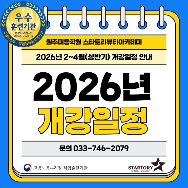 원주미용학원 스타토리뷰티 ✨2026년(2~4월 개강) 개강일정 안내!✨