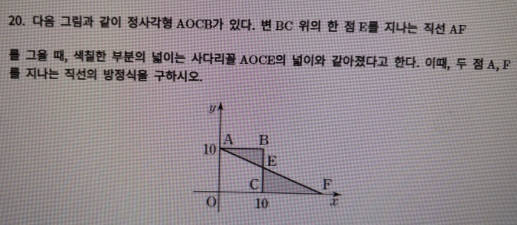 안녕하세요~ 단구동 수학학원 스마트 해법수학 남원주점 산수아저씨입니다~ ^ 날이 무~~~척이나 춥습니다. 잠깐의 외출에도 귀가 얼얼하고 뒤통수가 시릴 정도네요. 모두들 건강 유의하시길 바랍니다. 오늘 풀어 볼 문제는 중 2 일차함수. 어떻게 풀까? ① 직선의 방정식을 구하는데 필요한 것들을 생각한다. (보통은 기울기와 점 하나) ② 주어진 조건을 이용하여 식을 세운다. ③ 미지수가 식보다 많다고 주저하지 말고 풀어나가 보자. (나중에 풀게 될 고1 과정이지만 이차 부등식이나 방정식처럼 보이는 문제도 이차식이 소거되어 일차 부등식이나 방정식이 될 수도 있으니 일단 풀어나가 봅시다) 잘 보셨는지요~ 어렵지 않지만 풀다가 주저....... <img src="https://blogthumb.pstatic.net/MjAyNjAxMjFfMzMg/MDAxNzY4OTk0NDEyNjQ4.fnPcJg5xXds_lEOxKzpQdacJZuNt3SLiisjVFHrSsWcg.TMIESfemG1NgQDkEnN4Olg9v6odHgukk_4LZLPbK0u0g.JPEG/KakaoTalk_20260121_091437413_02.jpg?type=s3" />