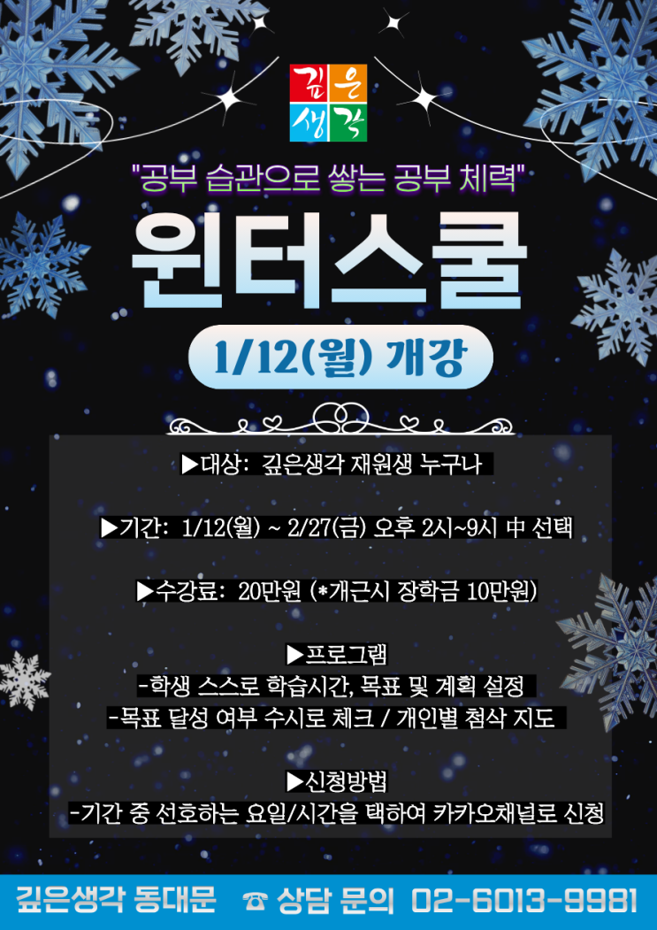 겨울방학 특강, 아이의 학습 성장을 완성할 결정적 기회깊은생각 동대문 겨울방학 수학·영어 집중 프로그램