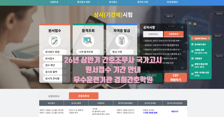 26년 상반기 간호조무사 국가고시 원서접수 안내 - 우수훈련기관 경희간호학원
