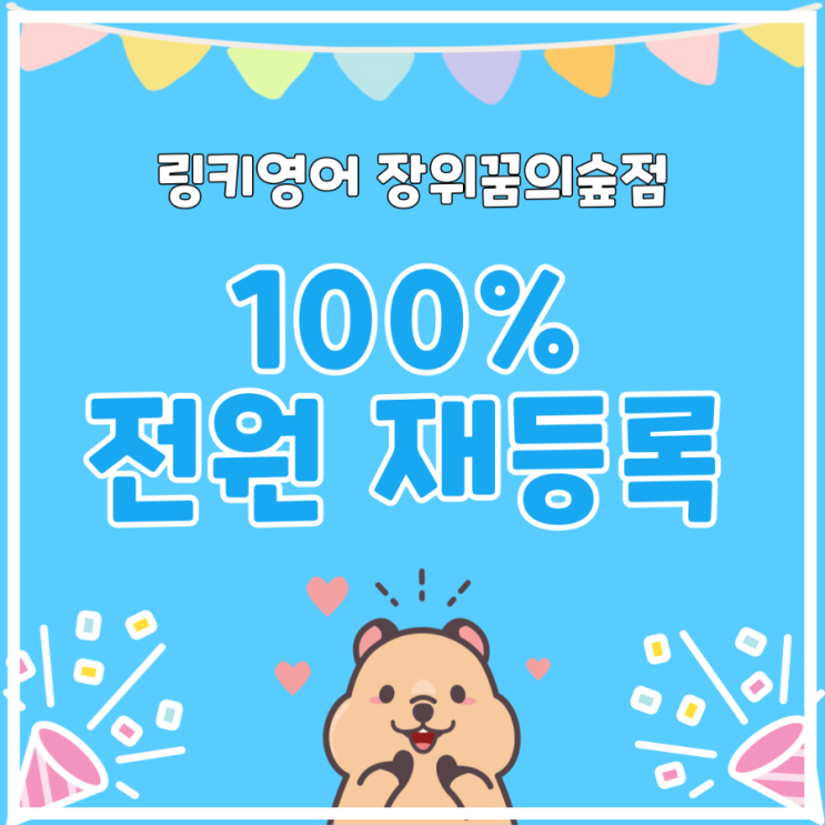 안녕하세요? 링키영어 장위꿈의숲점 Juliet 입니다^^ 상상도 못한 일이 일어났습니다. 원래는 예비초1학년의 두 개의 반을 통합해 3시 30분 한 클래스만 운영할 계획이었는데, 단 한 분의 결원도 없이 100% 전원 재등록이라는 정말 감사하고 놀라운 결과가 있었습니다. 등록 현황을 확인하는 순간, 학부모님들의 믿음과 아이들의 성장을 함께 지켜봐 주신 마음이 느껴져 뭉클해졌습니다. 진심으로 감사드립니다. 이에 간담회 때 약속드린 대로, 수업 환경과 아이들 참여도를 더욱 좋게 유지하기 위해 클래스를 한 개 추가로 개설합니다. 추가 개설 시간은 월·수 6시 15분이며, 아이들이 더 좋은 환경에서 즐겁게 배우고 성장할 수 있도록 항상 최....... <img src="https://blogthumb.pstatic.net/MjAyNjAyMjdfNTcg/MDAxNzcyMTcxODgyMDY1.BCt4Rhey0GTF3xw0yp1lzejM10CNw_lS6Qe_c2ZnFKkg.TIFxWlUlotMGeq9RrblpWTCiFItsoimg-5RWFXr2bwEg.PNG/900%A3%DF1771820446333.png?type=s3" />