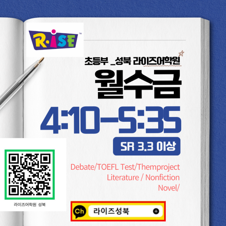 We are ✨RISE STAR✨We are so special. RISE provides quality education, where both teachers and students grow together. And Monthly presentations,Theme project, Daily English immersion with native teachers is help improve our English speaking skills. Teaches practical, usable English. It’s all about RISE! ※ 영어유학지인 라이즈에서 제대로된 영어실력과 글로벌인재가 되기위한 성품까지 라이징하세요. Thank you! Kakao_ http://pf.kakao.com/_xdQxhxcxj Insta_ https://www.instagram.com/rise_seongbuk/ naver_ https://naver.me/FZWaiMhihttps://blog 1688-4607 <img src="https://blogthumb.pstatic.net/MjAyNjAzMDFfNyAg/MDAxNzcyMjkyNDQ5OTQ5._5Mq5XxisYRHB2RVizOhmKSDdHVcf1r6O-5E7PalPvgg.8qKG6CVN24XS0S4TzVuAW_WBvCl2nNvdQA34wJgr-Lcg.PNG/900%A3%DF1%A3%DF20260301%A3%DF000254%A3%DF0000.png?type=s3" />