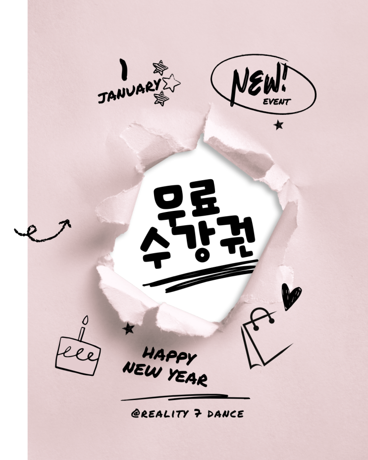 신규회원 이벤트 지금 신청하면 무료 수강권 100% 증정! 안녕하세요 저희 리얼리티세븐 댄스학원을 찾아주신 신규 회원분들만을 위한 특별한 이벤트를 준비했습니다! “한 번 체험해보고 결정하고 싶었는데…” “유료 결제가 망설여졌는데…” 이런 분들을 위해 부담 없이 시작할 수 있는 무료 수강 기회를 드립니다. ✅ 이벤트 대상 이벤트 기간 내 신청한 신규회원 누구나 이벤트 혜택 9시 클래스 무료 수강권 2매 제공 케이팝 커버댄스, 코레오 클래스 중 원하는 수업 선택가능 추가 비용 ❌ 이벤트 기간 [26.01.05] ~ [26.01.29] ※ 클래스별 15명 정원으로 조기 종료될 수 있으니 서둘러 주세요! 참여 방법....... <img src="https://blogthumb.pstatic.net/MjAyNTEyMjVfMjE2/MDAxNzY2NjM3Mjg0MjI3.ua8d-v3Pys9Cf9WEpwptLGnXPlpUr1sY7fpyP4RnGTgg.3lNiUi9zljoiMXZIzmig7gqcMq627NkdEm3g3UGcPHkg.PNG/KakaoTalk_20251224_142705978_01.png?type=s3" />