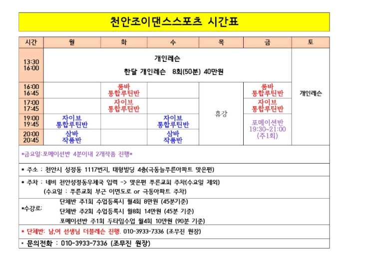 조이댄스스포츠시간표