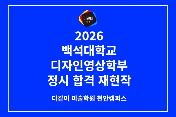 안녕하세요~ 다같이 미술학원 천안캠퍼스입니다. 전국 미술대학 중 문제은행을 미리 공개하는 대학교가 꽤 있죠. 특히 천안권 대학은 대부분의 학교가 문제은행으로 시험이 치러지는데요. ^^ 상명대학교 - 20문제 백석대학교 - 5문제 호서대학교 - 5문제 남서울대학교 - 5문제 선문대학교 - 5문제 문제은행 대학은 문제를 미리 알기 때문에 학원에서 미리 준비할 수 있다는 장점과, 그만큼 밀도와 완성도가 매우 높아야한다는 단점이 함께 있습니다. 천안 다같이 미술학원에서 2026 백석대에 최초합격한 재원생의 문제은행 준비작들을 공개합니다! 미술대학 문제은행 준비과정 2026 백석대 문제은행 연습작 전체샷 입니다. 구성은 본인의 스타일....... <img src="https://blogthumb.pstatic.net/MjAyNjAyMDVfMTQg/MDAxNzcwMjkwMjg0MDIx.AkvQVFcQ0qJq4r1f4-4mbI0q0xt8guksw21B1LXj330g.z7jQpQyH_5HvlTw-Z10MSPgsQwQYdTfxA5DeopA1l8og.JPEG/%BA%ED%B7%CE%B1%D7%BD%E6%B3%D7%C0%CF_%B9%E9%BC%AE-03.jpg?type=s3" />