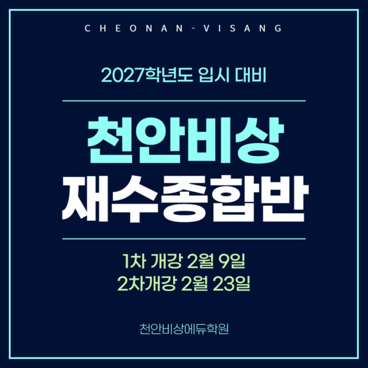 안녕하세요, 천안비상에듀학원 공식블로그입니다. 오늘은 현재 모집중인 2027학년도 천안비상 재수종합반에 안내해 드릴게요. 천안 재수학원, 왜 재종이 합격률이 높은가? 많은 수험생들이 재도전의 길에서 좌절하는 이유는 매일의 나태함을 이겨낼 정교한 통제 장치가 없기 때문입니다. 게다가 여러분이 치러야 할 2027학년도 수능은 현행 입시 체제의 마지막 관문으로, 한번의 실수가 돌이킬 수 없는 결과로 이어질 수 있죠. 벌써 2월, 불안한 마음을 다잡아 오로지 공부에만 몰입해야 할 시기에 여러분이 가장 우선 순위에 두어야 할 것은 나를 강제로라도 공부하게 만들 절대적인 환경의 구축입니다. 거친 파도 속에서도 항로를 이탈하지 않....... <img src="https://blogthumb.pstatic.net/MjAyNjAyMDZfNTIg/MDAxNzcwMzQ5MTE2ODYz.Hp7TuNZ0N3htdCYKq2b6KlBtacsdoGmgxxzzovcrsIsg.xD1_BOdTC1w5V_jfYOBHE1ApdlDMe40OHD5Pa7Y26PUg.JPEG/%C3%B5%BE%C8%C0%E7%BC%F6%C7%D0%BF%F8%C3%B5%BE%C8%BA%F1%BB%F3%BD%E6%B3%D7%C0%CF20260206.jpg?type=s3" />