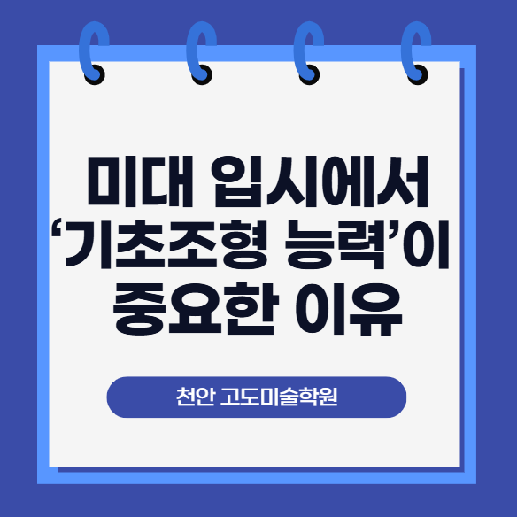 안녕하세요 불당동입시미술을 진행하는 천안 고도미술학원입니다. 미대 입시를 준비하다 보면 “도대체 뭘 먼저 해야 하지?” 이런 고민 한 번쯤 해보셨을 거예요. 그럴 때 가장 먼저 꼭 짚고 넘어가야 하는 게 바로 ‘기초조형 능력’입니다. 그런데 기초조형 능력이라고 하면 단순히 그림의 기초 정도로 생각하는 경우가 많아요. 사실은 그보다 훨씬 중요한 개념입니다. 기초조형 능력은 쉽게 말해서 ‘보는 대로 제대로 이해하고 표현하는 힘’이에요. 사물의 형태, 비례, 구조를 얼마나 정확하게 파악하고 그걸 그림으로 옮길 수 있는지가 핵심입니다. 미대 입시에서는 그림이 얼마나 화려한지보다 형태를 제대로 이해하고 있는지를 더....... <img src="https://blogthumb.pstatic.net/MjAyNjAzMzFfMTgw/MDAxNzc0OTM1ODk2MDgx.FIXVmuzBYgIZlhxljNoamjErcuvK0m81M4EIWJ4hgc4g.Na1C06EfSPCdcrjA9r5WeYBNvqrzFLNuTA3j0dXOquog.PNG/image.png?type=s3" />