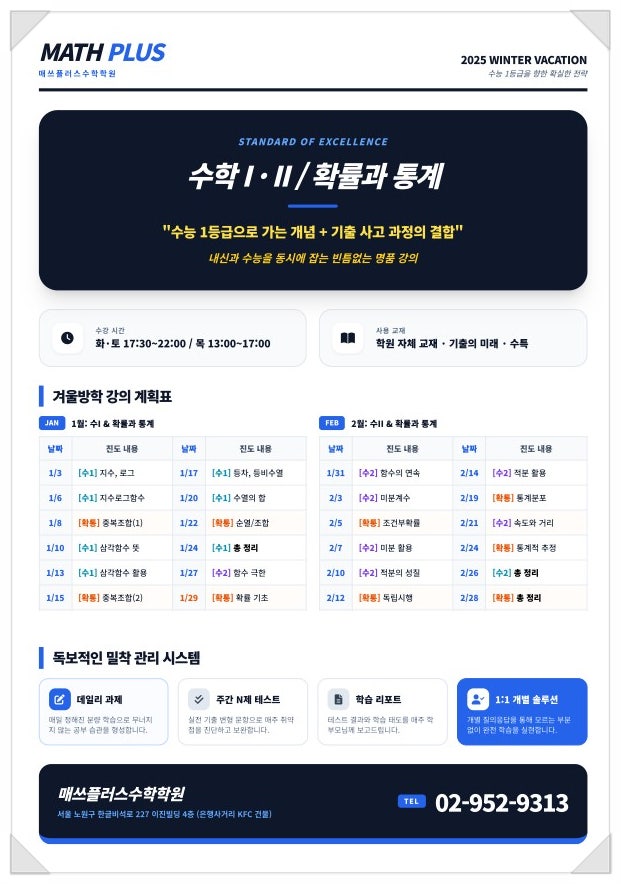 [2026 겨울방학] 고3M반(수1,2,확통) 강의 계획표