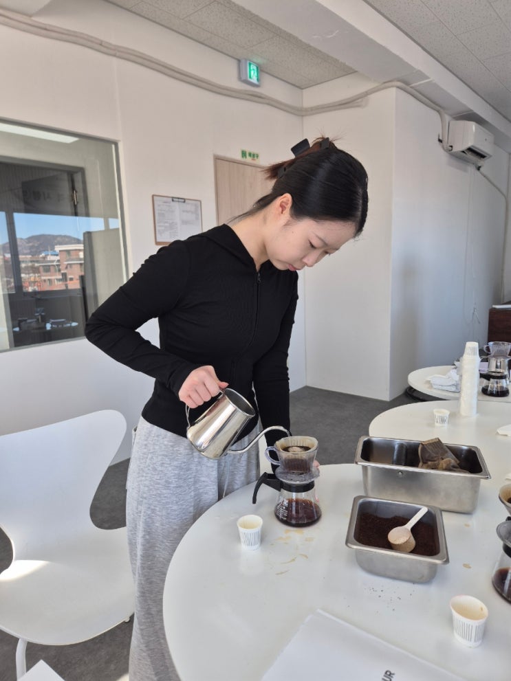 ☕ 핸드드립으로 배우는 커피의 차이 같은 원두, 다른 결과 커피는 참 재미있는 음료다. 같은 원두를 사용해도 어떻게 내리느냐에 따라 전혀 다른 맛이 나온다. 오늘은 여러 가지 원두를 놓고 핸드드립으로 직접 추출하며 비교 테이스팅을 진행했다. 원두 준비부터 차분하게 체에 담긴 원두를 보면 로스팅 정도와 색감부터 미묘한 차이가 느껴진다. 색이 진할수록 쓴맛과 바디감 밝을수록 산미와 향 눈으로 한 번, 손으로 한 번 느끼며 커피를 ‘마시기 전 단계’부터 경험해본다. 분쇄, 그리고 가장 중요한 ‘투입’ 드리퍼 위에 필터를 올리고 정확한 양의 커피를 담는 순간. 이 작은 스푼 하나가 오늘 커피의 농도와 균형을 결정한....... <img src="https://blogthumb.pstatic.net/MjAyNTEyMjZfMjQx/MDAxNzY2NzU4Mzg1MzE1.kIxwtPmVeMV2a_PCpTcjoIn-LaxiPdTLCBuILg-GcQUg.4V-4u3QIievKAO3xxWTgoTELIUrdXOKlGsVWJ_rxZ7Yg.JPEG/900%A3%DF20251226%A3%DF111851.jpg?type=s3" />