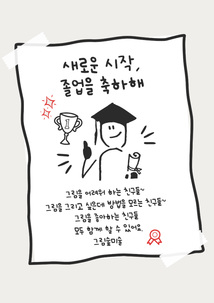 안녕하세요. 꿈을 그리는 창의미술 #그림숲입니다. 작은 손으로 써 내려온 성장의 시간, 졸업을 축하합니다. 어느새 아이들의 가방이 조금 작아 보이는 계절입니다. 처음 연필을 쥐던 손이 이제는 자기 생각을 그림으로, 말로 표현할 수 있게 되었고 그 시간들이 모여 졸업이라는 이름으로 마무리되었습니다. 유치원 졸업, 초등학교 졸업, 아이들에게 졸업은 끝이 아니라 새로운 시작을 알리는 첫 걸음입니다. 졸업을 축하하며 졸업은 잘 해냈다는 증표이자 그동안의 시간에 대한 따뜻한 박수입니다. 울며 등원하던 날도 친구와 웃으며 지냈던 날도 조금 서툴렀지만 끝까지 해냈던 순간도 모두 아이를 한 뼘 더 자라게 했습니다. 오늘의 졸....... <img src="https://blogthumb.pstatic.net/MjAyNjAxMTFfMjk2/MDAxNzY4MTM3NTIwNjgw.bncyqfGuiJC0F2agTwgC_NPuCmTMKRMtp2CaT1N7GDcg.ishYiiVTmX4VxI2muQ3vX1obpPHZhFB1YlCCD3sysBMg.PNG/900%A3%DF1768137478659.png?type=s3" />