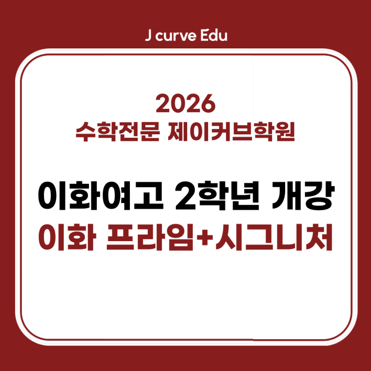 안녕하세요! 종로구 수학전문 제이커브학원 인사드립니다. 고1을 마치고 고2로 올라가는 시기는 갑자기 수학이 너무 어려워지는 것 같고, 1학년 때랑은 완전히 달라진 분위기에 이대로(하던대로) 공부해도 괜찮은지에 대한 고민이 깊어지기 때입니다. 특히 이화여고 2학년 수학은 분량·난이도·변별력 모두 한 차원 상승하는 시기이기도 하죠. 그래서 지금을 어떻게 보내느냐에 따라 이후 성적의 흐름도 크게 달라집니다. 그렇다고 불안해하실 필요는 없습니다. 이화여고 2학년 학생들을 위해서 제이커브학원에서 2026년 3월, 이화여고 2학년만을 위한 박소윤T의 수학 내신 대비 커리큘럼을 개강하기 때문이죠. 박소윤T 수업 궁금하시죠? 실제 수....... <img src="https://blogthumb.pstatic.net/MjAyNjAxMzBfMzMg/MDAxNzY5NzM2MzMxMzg5.O3mnWTntU2smpbEBiDFdgMmuRA7t9_V9m_1-OX7gXkEg.stUJHJ2R7pKZ5q20ZN7ETlyIFWlJYnf-4mPyMOSg5Dkg.PNG/1.png?type=s3" />