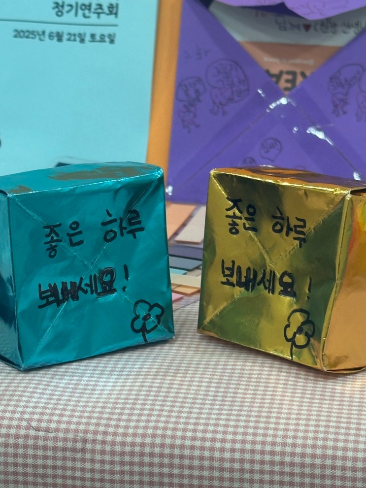 너무 오랜만에 올리는 학원 일상이에요 하루하루 바쁘게 흘러가다 보니 벌써 여름이 지나 겨울이네요✨ 3학년 친구에게 선물 받았는데 안에는 하리보 젤리가 들어있어요..넘 귀엽 이런 트로피도 받아보고요 감동 날이 더웠던 어느 날, 깜짝 아이스크림 선물 한양음악학원 2학년 친구가 8월에 콩쿨을 나갔어요! 추계예대에서 하는 삼성음악콩쿨이었어요. 첫 콩쿨이라 떨렸을 텐데.. 35명중 준대상(2등)!! 무대에서 차분하게 너무너무 잘해서 감동 10월 주말에는 할로윈 장식을 꾸몄어요 아이들뿐만 아니라 부모님들도 예쁘다고 하셔서 넘 뿌듯했다는.. 생각보다 더 예쁨.. 지금 학원은 크리....... <img src="https://blogthumb.pstatic.net/MjAyNTExMDRfMzUg/MDAxNzYyMjI5NDA3MTA4.5dRV_CbYYfG3eeCW98DCQ9Q0dDffjQ6NqjRgAXHpEh0g.qbVTMcful8dWZ7HBXDkZUY97bPU66mfU0aZCopC5Gmgg.JPEG/IMG%A3%DF1649.JPG?type=s3" />