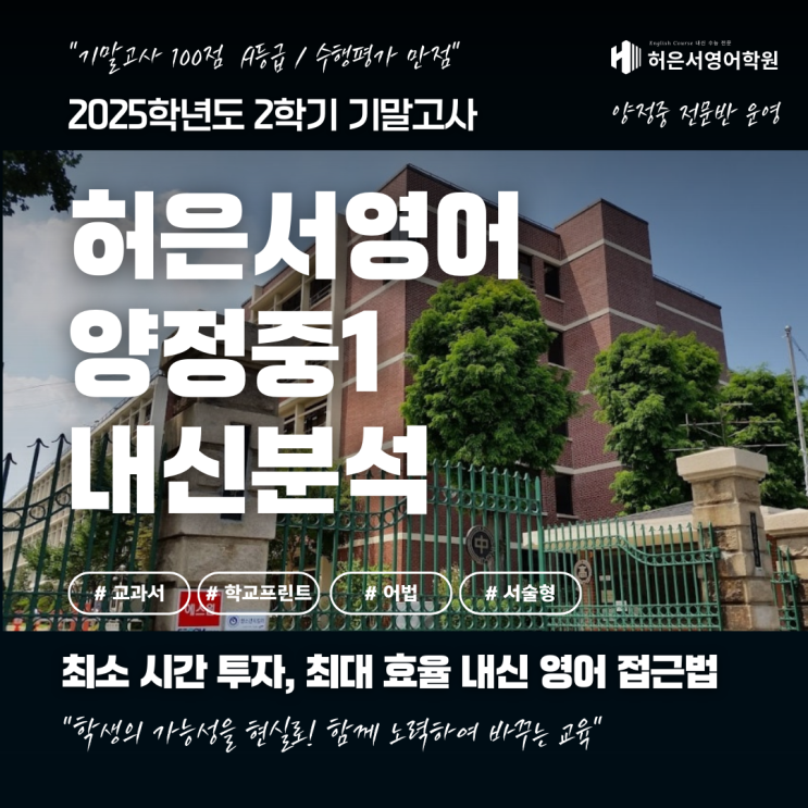 목동 양정중 영어 : 허은서영어<양정중 전문> 2025 2학기 기말고사 1등급 내신분석 : 출제경향 완벽 정리