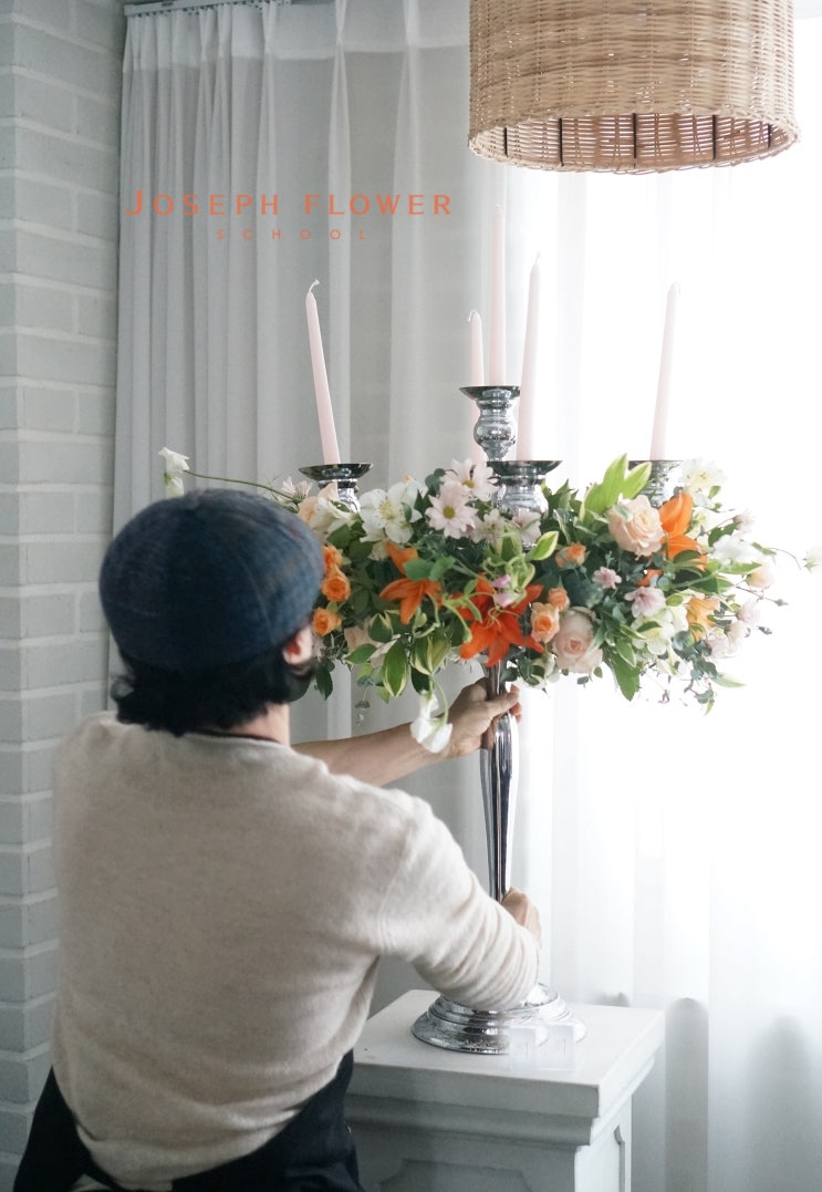 웨딩 & 이벤트 플라워 디자인 클래스 꽃은 단순한 장식이 아니라 공간의 분위기와 감정을 완성하는 중요한 요소입니다. 특히 웨딩과 이벤트 플라워는 하나의 꽃 작품이 공간 전체의 인상을 좌우하기 때문에 디자인뿐 아니라 구조, 균형, 설치까지 고려한 전문적인 작업이 필요합니다. 조셉플라워스쿨의 국비지원 웨딩 & 이벤트 플라워 과정에서는 실제 현장에서 활용되는 다양한 플라워 스타일링을 실습 중심으로 배우게 됩니다. 이번 수업에서는 행사 공간에서 자주 사용되는 캔들라브라 센터피스 디자인을 진행했습니다. 공간을 완성하는 플라워 센터피스 센터피스는 테이블이나 공간의 중심을 이루는 꽃 장식입니다. 특히 웨딩이나 파....... <img src="https://blogthumb.pstatic.net/MjAyNjAzMDRfMjk5/MDAxNzcyNTk2NDQ1NzUz.CvtEepAsop78mb44ZG9zgVeBNAC7PmrbYE2wlTQkJAQg.1mfoll-IPYkJFI8YSESTx3F44GKDdYTPT5IN_e0I5F4g.JPEG/DSC00026.jpg?type=s3" />