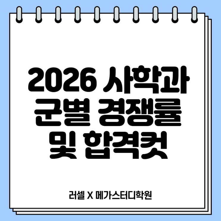 안녕하세요. 러셀X메가스터디학원입니다. 입시는 한 해의 결과만으로 판단하기 어렵습니다. 특히 정시는 전년도와 그 이전 해의 경쟁률, 합격선, 추가 합격 흐름이 쌓여 다음 해 지원 전략의 기준이 됩니다. 군별 모집 구조와 대학 간 이동이 동시에 발생하는 정시의 특성상, 단순한 수치 비교보다는 경쟁률과 합격선이 어떤 방향으로 움직이고 있는지를 읽는 것이 중요합니다. 정시 경쟁률과 합격선은 최근 2개년 자료만 살펴봐도 충분한 판단 근거를 얻을 수 있습니다. 이에 따라 최근 2개년 정시 자료를 중심으로 인서울 및 수도권 대학 사학과 정시 입결의 흐름을 살펴봅시다! 정시에서 인서울 및 수도권 대학 사학과 모집 인원은 가군에서 9....... <img src="https://blogthumb.pstatic.net/MjAyNTEyMjlfMjIz/MDAxNzY2OTgzODMwMzE5.iKNA643d3-dvaYtESNiJfL-slsrOnokLvIJJ43ASYI8g.ER6Jjf1SNxZF-PhOLKz-Ufsv7elsZn2gSiPC38wO_GQg.JPEG/%C1%A4%BA%B8%BC%BA_%BA%ED%B7%CE%B1%D7_%BD%E6%B3%D7%C0%CF.jpg?type=s3" />