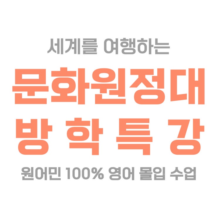 겨울방학, 아이의 영어를 문제집이 아닌 ‘경험’으로 채우고 싶다면 차곡차곡리딩앤잉글리쉬의 문화원정대 방학특강을 소개합니다. 문화원정대는 1. 원어민 선생님과 100% 영어로만 진행되는 수업 2. 세계 여러 나라의 문화·생활·역사를 영어로 배우는 3. 3시간, 영어 사용량과 아이들의 말하는 힘이 눈에 띄게 자라는 수업이에요. 100% 영어 몰입 수업, 문화원정대! 이렇게 진행됩니다. ✔️ 원어민 선생님의 자연스러운 영어 설명 ✔️ 아이 눈높이에 맞춘 질문과 리액션 ✔️ 세계지리, 역사를 이해하고 말하기까지 이어지는 구조 ✔️ 각 클래스마다 나라별 주제에 따른 워크시트를 활용해 문제풀이를 하며 세계를 이해합니다. 문화원정대의....... <img src="https://blogthumb.pstatic.net/MjAyNjAxMjhfMTM2/MDAxNzY5NjAwNDU3MDYx.q8Bg678VwzZvLCG9v5QccU22L_8gB1vYWWfvO9aBDusg.aYPh2FM98UD-QJdHWD7ytlO05s_-tN_ao6ttIjOIclog.JPEG/1000068475.jpg?type=s3" />