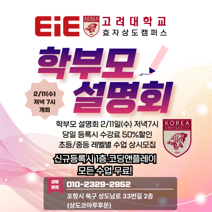 [포항영어학원] EiE효자상도캠퍼스 2/11(수요일) 학부모설명회 개최합니다