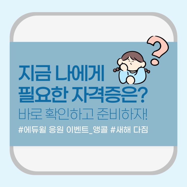안녕하세요, 에듀윌입니다~! 추운 날씨로 손발은 차가워도, 마음만은 따뜻한 연말·연초 보내시기 바랍니다! ☃️ 신년 계획의 대명사 자격증 취득, 결심은 했지만 어디서부터 시작해야 할지 막막한 경우가 많죠. 비슷해 보이는 자격증도 많고 추천도 제각각이니 선택하기도 어려운데요! 이럴 때 필요한 것은, ‘어떤 자격증이 좋은지’가 아니라 ‘내가 자격증을 따려는 이유는 무엇인지’에 대한 정리입니다! 그래서 오늘은 목적별 자격증 추천을 가져왔어요~! 나의 상황과 목적에 맞는 자격증 확인하고, 에듀윌 특별 이벤트도 참여해 보세요! [목차] - 취업 준비용 자격증 추천 - 이직·커리어 전환용 자격증 추천 - 초심자를 위한 첫....... <img src="https://blogthumb.pstatic.net/MjAyNTEyMjZfMTcy/MDAxNzY2NzM0OTc1OTUy.P9RjjfP8piiJgMm0zSMJkFfy_4vZPA9UFrhlbNFTgr4g.JbMGUT8L1ToIQUgpBKmS5hKVOmJq8mXm5OzlQ3_wfu0g.PNG/001.png?type=s3" />