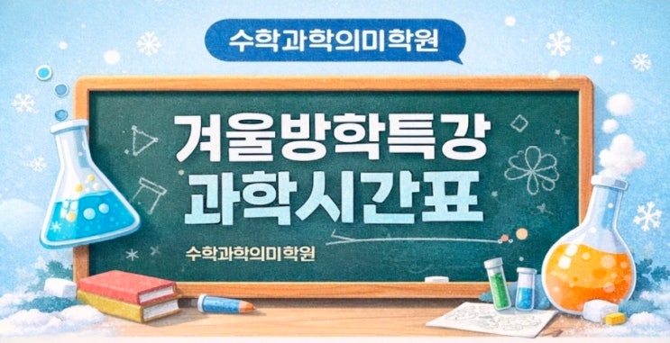 <수학과학의미학원 겨울방학 과학 특강 특징> 안녕하세요. 수학과학의미학원 입니다. 과학시간표안내입니다. 중1 과정 (8회 수업) 수요일 7:30~10:001/7일 개강 ~ 2/4 (2/18일 휴강) 중2 과정 (8회 수업) 수요일 4:30~7:00 1/7일 개강 ~ 2/4 (2/18일 휴강) 토요일 3:30~6:00 1/10일 개강 ~ 2/28 중3 과정 (8회 수업) 금요일 4:30~7:00 1/9 개강 ~ 2/27 일요일 1:00~3:30 1/11 개강 ~ 2/28 통합과학1 (9회 수업) 일요일 3:30~6:30 1/3 개강 ~ 2/28( 예비고1대상) 금요일 7:30~10시 1/2개강~2/28(예비중3대상) 토요일 10:00~12:30 1/3개강~2/28 (예비중3대상) ■ 수학과학의미학원 겨울방학 과학 특강 특징 중학교 물리·화학 핵심 단원만 선....... <img src="https://blogthumb.pstatic.net/MjAyNTEyMTlfMjEz/MDAxNzY2MTQzMDg1Mzkw.bvoe5nMaPxgYPnRyuJhOh018QNGglAtfrOH4YAg3k3Ig.OjOBmjGSMM5GLGKW5PST7J5tW8j0QBnkxz9rMWwgHL8g.JPEG/900%A3%DFScreenshot%A3%DF20251219%A3%DF195650%A3%DFChatGPT.jpg?type=s3" />