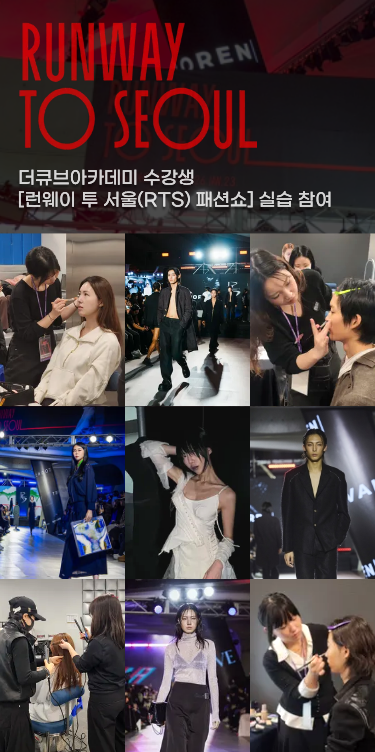 안녕하세요 ! 강남메이크업학원, 특수분장 전문 미용학원 더큐브 아카데미입니다! 얼마 전, 2026 DDP RTS 런웨이 투 서울 패션쇼 현장에 더큐브아카데미가 함께 했습니다! 다수의 국내 패션 브랜드가 참여한 대형 글로벌 패션 프로젝트인 만큼 이번 RTS 패션쇼에 참여할 수 있었다는 점에서 더욱 뜻깊은 시간이었습니다. 이번 현장 실습은 더큐브아카데미 메이크업 실무 수업 수강생 중 선발된 학생들만 참여 가능한 특별 실습 현장이었는데요. 실제 패션쇼 백스테이지에서 메이크업 실무를 직접 경험할 수 있는 아주 값진 기회였습니다! 특히 이번 RTS 패션쇼는 여러 브랜드가 함께한 만큼 각기 다른 콘셉트에 맞춘 메이크업과 분장이 다양하게....... <img src="https://blogthumb.pstatic.net/MjAyNjAxMDdfMzAw/MDAxNzY3NzQ5OTczMzk4.jvzmvyXwz6b_q_ouCpJOhHG57_USb7h3oHAmROkFjd0g.XGyzKWVNwxf-ypA84wk70HgIrAptRJD-zLsjsn64Pl4g.PNG/%B8%F0%B9%D9%C0%CF_%28%B0%AD%B4%EB%B8%AE_%C0%DB%BE%F7%C1%DF%29-_%BA%B9%BB%E7%BA%BB_%283%29.png?type=s3" />