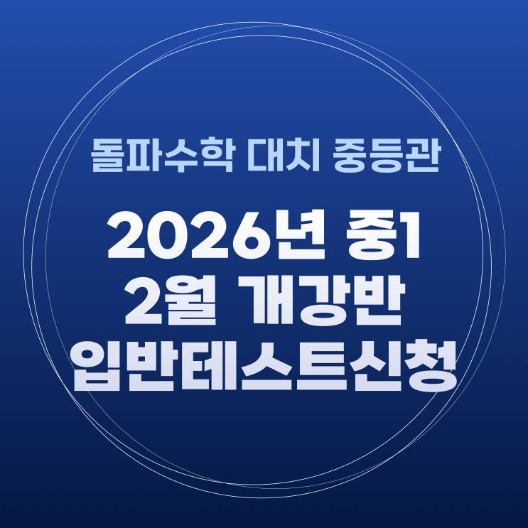 ☆ 2/24 (화)부터 순차적 개강 ☆ ※ 월/금 반은 3/2(월) 개강 ※ 안녕하세요, 돌파수학학원입니다. 많은 관심 보여주셔서 감사드립니다. 테스트 신청 확정 안내 문자는 1/29(목) 13시 30분 발송됩니다. 테스트 대기를 원하시는 경우, 아래 링크를 통해 신청 부탁드립니다. 중복 정리 후 순차적으로 연락드리겠습니다. ※ 입반테스트 신청 시 주의사항 ※ 원하는 과정과 요일을 정하고 입반테스트를 신청해주셔야 합니다 1. 신청 확정된 수강반 및 응시 시간 변경 불가 2. 중학교 1학년 학생만 응시 가능(26년 기준) 3. 늦게 입실한 경우에도 제출시간은 동일 4. 25년 예비중1 공통수학1 기본 시험지와 상이 (이전 시험에 응시했던 학생 재응시 가....... <img src="https://blogthumb.pstatic.net/MjAyNjAxMTVfMjQ0/MDAxNzY4NDYxNDI5Nzc3.kqvIC9u9RqEn49b_4AstfbKPsgBzGk9Kkf0GdX81vS4g.gE7AmcQikuV9_t8RgIzIZ6IhQ-4BxkBZCzWYBz9TTFgg.PNG/26%B3%E22%BF%F9_%281%29.png?type=s3" />