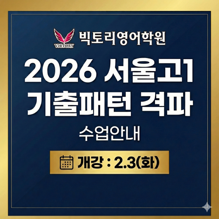 [서울고영어학원] 2026년 2월 '서울고1 기출패턴 격파' 수업안내/3월은 늦습니다/빅토리영어학원/서울고내신대비