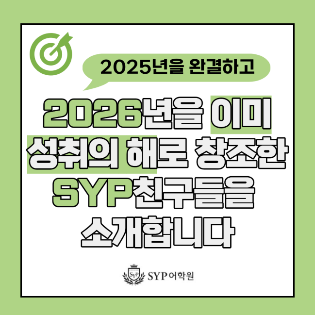 2025년을 완결하고 2026년을 이미 성취의 해로 창조한 SYP친구들을 소개합니다!ㅣ경산펜타힐즈영어ㅣ경산중산동영어ㅣ대구수성구시지영어ㅣ수능ㅣ초등ㅣ중등ㅣ고등ㅣSYP어학원