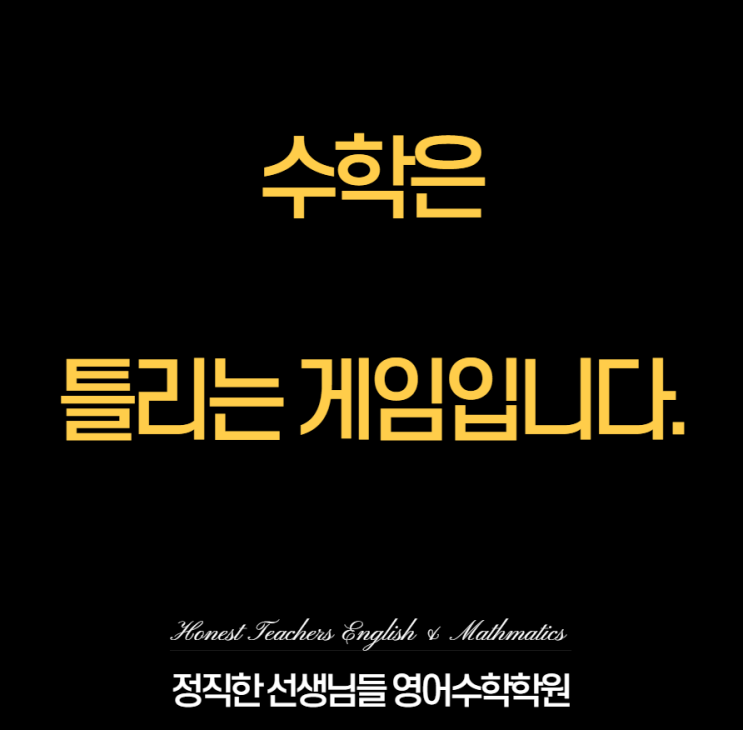 감사합니다. 경산사동 수학학원 정직한 선생님들입니다. 수학은 틀리는 과목이다라... 말이 좀 이상합니다. 하지만 정말 진실입니다. 왜냐면 "수학은 모르는 문제를 찾아내서 극복하는 게임"이거든요 아직 조금 감이 안 잡히실 수 있을 것 같습니다. 차근차근 한번 설명 드려 볼게요 :) 실제 상담 케이스 [케이스 1] 중1 OO 어머님 "초등 떄는 90점대였는데 중학교 오니까 60점대예요. 계산 실수가 너무 많아서 같은 유형 100문제씩 풀리고 있는데... 점수가 안 오르네요." [케이스 2] 중3 OO 아버님 "수학 공부는 제일 많이 하는데 내신 5등급이에요. 학원도 2개 다니는데 문제가 무엇일까요?" [케이스 3] 고1 OO....... <img src="https://blogthumb.pstatic.net/MjAyNjAxMjZfMTAz/MDAxNzY5NDE1ODc2Njkz.UgUnQWVaMFvAPDkOJOL9NwTrGHQaHnKqaMH-677GEdUg.RV1SqLxWN82N32FwH6ZebtvcPEtCQQZqgoemaar4Uucg.PNG/image.png?type=s3" />