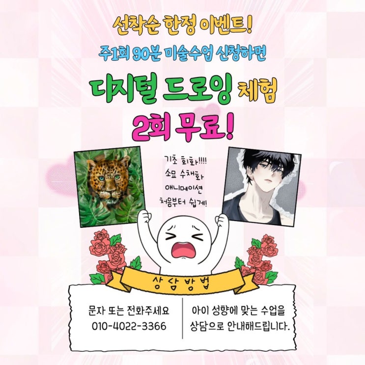 주1회 90분, 밀도 있는 미술 수업과 디지털드로잉 무료 체험 이벤트!
