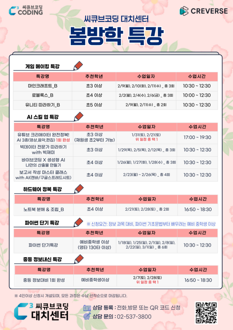 대치동코딩학원│씨큐브코딩 대치센터 봄방학 특강