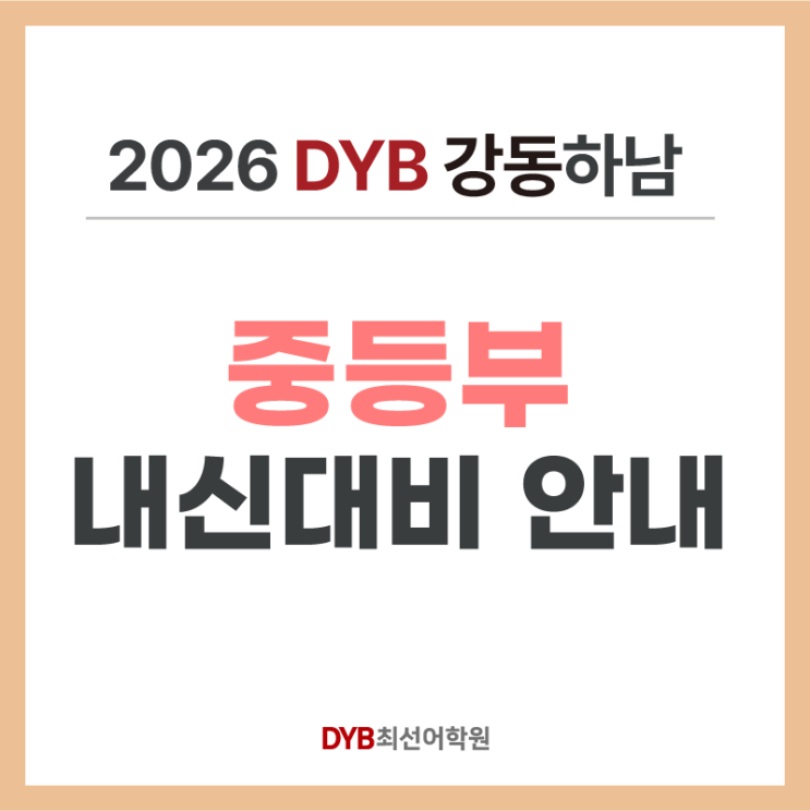 [DYB 최선어학원 강동하남] 2026 중등부 내신개강 안내!