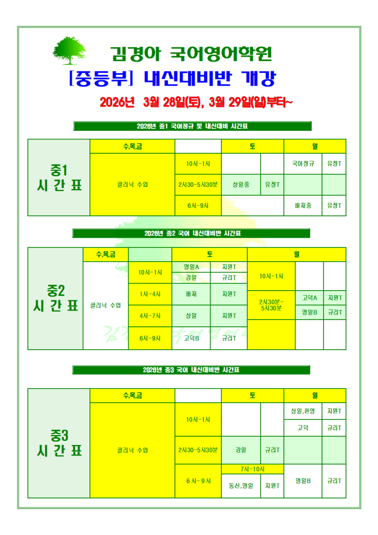 [중등부] 26년 1학기 중간고사 내신대비반 개강