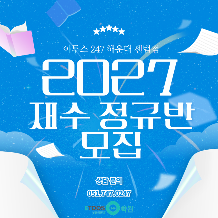 ★ 학사일정 안내 ★ 26년 1월 1일 ~ 27년 2월 28일 학사 일정을 안내드립니다. 수강문의 수업 중에는 상담이 어려우니 카카오톡 채널을 통해 연락주세요. 카카오톡 채널 문의 시, 문의 내용과 희망 수강 과목을 연락처와 함께 남겨주세요! ★ 유선문의 : 센텀점 051-784-4243 / 센텀파크점 051-925-4242 ★ 카카오톡 채널 문의 아래 링크를 터치하시면 카카오톡 채널로 연결됩니다. ↓↓↓↓↓↓↓↓↓↓↓↓↓↓ <img src="https://blogthumb.pstatic.net/MjAyNTEyMThfMjMw/MDAxNzY2MDM0OTIwMTYx.KLKmNnvwRm5hfDdb9TgrfE2nbO_5R1cS3AfORL6jl7sg.wxPYAEvz1ESw41qtSYy878nH3ZdqH0WS-3RxYyO1h8og.JPEG/2026%C7%D0%B3%E2%B5%B5_%C7%D0%BB%E7%C0%CF%C1%A4.jpg?type=s3" />