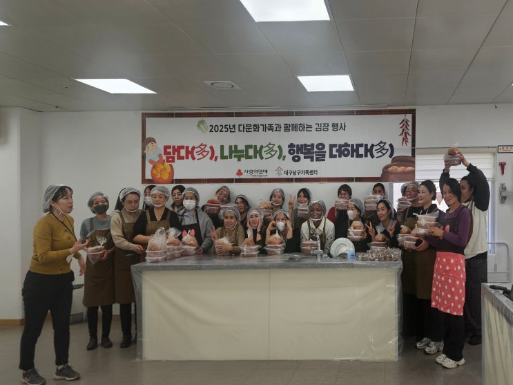 대구 남구 가족센터는 다문화가족과 지역 주민이 함께하는 김장김치 담그기 행사를 통해 한국의 전통 식문화를 나누고, 이웃 간의 정을 나누는 뜻 깊은 시간을 가졌습니다. 배추 손질하고 절이는 과정에서 김장의 기본을 배우는 참가자들 김치 양념을 정성껏 버무리며 서로 도우며 김치를 담그는 모습에서 웃음과 협력이 가득한 분위기 김장으로 이어진 문화, 김치로 가까워진 이웃 함께 담그는 김치, 함께 나누는 마음 다름을 이해하고 정을 나눈 따뜻한 하루 #서부요리학원#대구남구가족센터#김장김치#김장체험#전통음식체험#함께하는김장 <img src="https://blogthumb.pstatic.net/MjAyNjAxMTVfMjY2/MDAxNzY4NDQwNzgyMDA3.PDFoK_A9ouPx2Xs8hHhY6tW1uROFwOKQWQL_0axyWY0g.B8VEhk9ChhUiX6s4S_rLsHUB1ocu5xJQQy39TWnC1Dcg.JPEG/KakaoTalk_20260115_103203636.jpg?type=s3" />