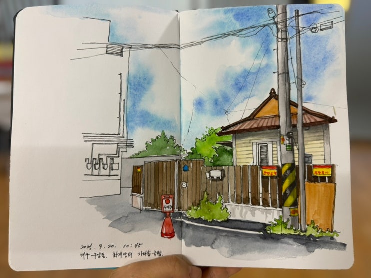 한동안 블로그 정리를 소홀이 해서 어반스케치 위주로 다시 정리를 하려고 한다. 요즘 나의 그림 스케줄은 수요일은 대구 어반스케쳐스 수요드로잉이 있고 금요일은 누드 드로잉 수업이 있다. 그 외에는 스케치 다녀오며 찍어 놓은 사진을 바탕으로 어반 스케치와 과슈화를 그리고 있다. 아이들을 다 키워 놓으니 내 일을 하면서도 잠시나마 그림 그릴 수 있는 시간이 생겨 감사하다. 어반스케치 작품이 많아져 당분간 어반스케치 위주의 글을 올릴 예정이다. 지난 9월 남편과 다녀왔던 화개장터 가마솥 국밥집을 그려보았다. 앉아 그릴 만한 자리가 없어 벽에 기대 간단히 스케치 하고 학원에서 마무리 하였다. 음식도 저렴하고 맛있었고 건물의....... <img src="https://blogthumb.pstatic.net/MjAyNTEyMjFfMjEg/MDAxNzY2MzAyNTczNTk4.FAhcB8mmqxnvypScDMOiKY6OoNG15R3fiBVQUbi_xvIg.0TDLErQrdPV5kUCniNTJSmiyD0gwz5-IshvJ8mrUN0Yg.JPEG/IMG%A3%DF6604.jpg?type=s3" />