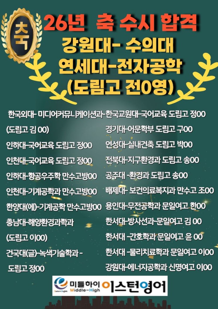 서창동 영어학원- 26학년도 대입 수시 최종합격을 축하합니다.