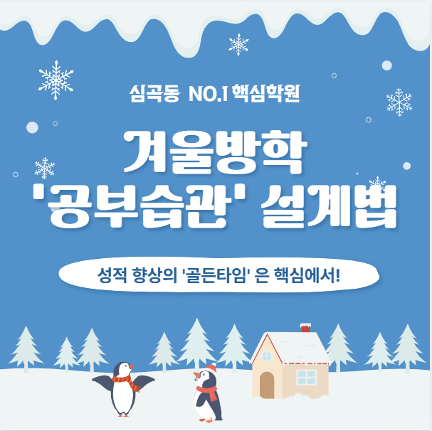 <새학기 전에 반드시 잡아야 할 것, ‘공부 습관’입니다> 안녕하세요:) 나를 알아주는 핵심학원 입니다. 겨울방학은 길지만, 그냥 흘려보내기엔 너무 중요한 시간입니다. 특히 중‧고등 학생에게 겨울방학은 선행의 시간이기도 하지만, 그보다 더 중요한 것은 새학기를 버틸 수 있는 학습 습관을 만드는 시기라는 점입니다. 학기 중에는 시간에 쫓겨 ‘습관’을 만들기 어렵습니다. 반면 겨울방학은 스스로 계획하고, 실행하고, 점검해볼 수 있는 유일한 기회입니다. 왜 겨울방학에 ‘습관’이 먼저일까요? 중‧고등 공부의 가장 큰 차이는 자기관리 능력입니다. 같은 수업을 들어도 성과가 갈리는 이유는 분명합니다. 계획 없이 공....... <img src="https://blogthumb.pstatic.net/MjAyNjAxMTVfMTcz/MDAxNzY4NDY2MjgxNjU3.ZGaO-9p4QRQ50yiG_Cd7GYzg-Wk2Riio1TaNJXE3IyEg.Ac6Gt7l3VQOIpnFANpdTMJmMZNHwlnUYZ3zZoz6o-CEg.PNG/image.png?type=s3" />