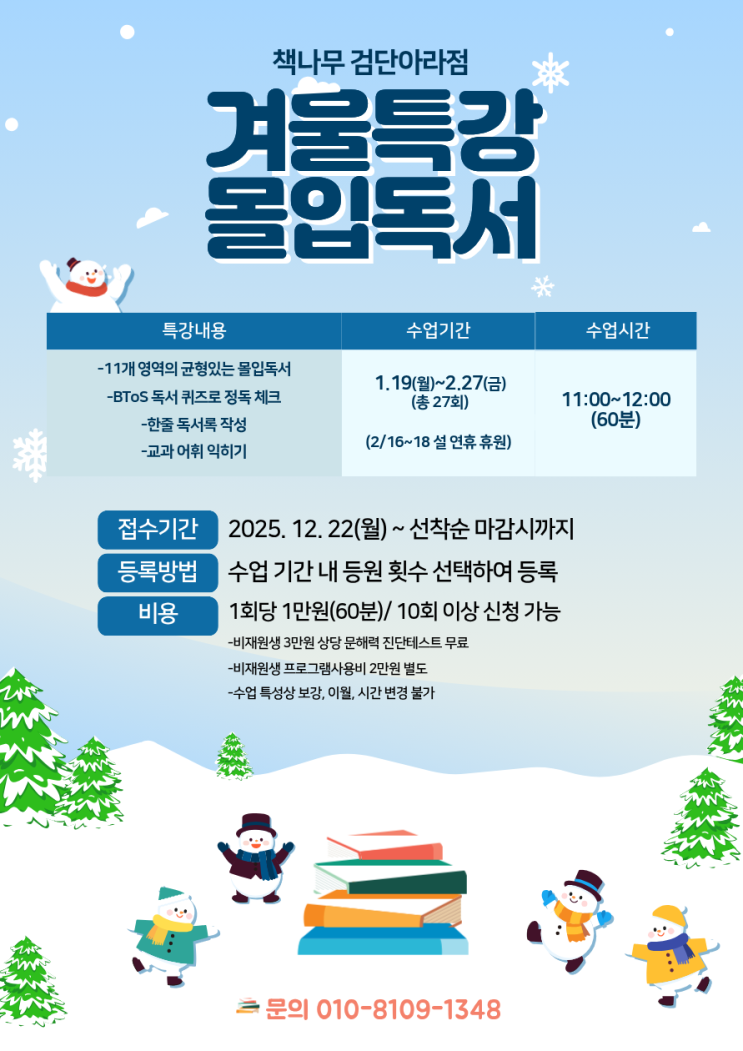 [검단신도시 독서논술학원]겨울방학 몰입독서 특강 모집 안내