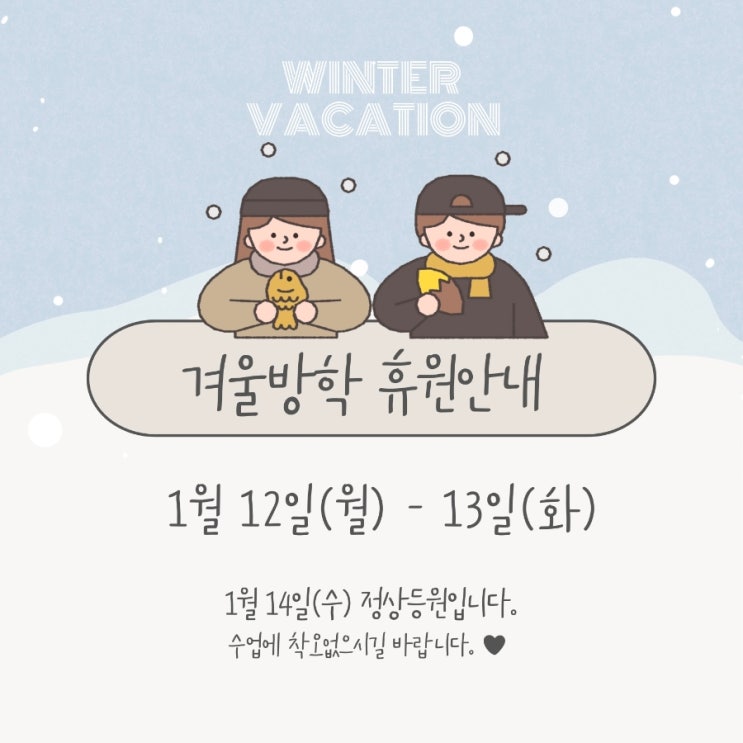 이번 겨울방학, 짧지만 깊이 있는 독서 경험을 만들어 줄 겨울방학 몰입독서 특강을 진행합니다. 두뇌가 가장 활발하게 작동하는 오전 시간, 방학 동안 매일 한 시간씩 책을 읽다 보면 책에 대한 흥미가 높아지고, 읽고 이해하는 능력까지 키울 수 있습니다. 학기 중에 책 읽을 시간이 충분하지 않거나, 독서 습관을 기르고 싶은 아이들에게 추천하는 프로그램입니다. ●특강 내용 진단 테스트를 통한 각자의 수준에 맞는 균형 있는 몰입독서 BToS 독서 퀴즈로 정독 체크 읽고 생각한 내용을 정리하여 한 줄 독서록 작성 교과 어휘 익히기 ●특강 일정 - 2026년 1월 19일(월) ~ 2월 27일(금) (월~금, 총 27회) (2월 16,17,18일 휴강) ●수업....... <img src="https://blogthumb.pstatic.net/MjAyNTEyMjFfMjY2/MDAxNzY2Mjk3NjA3Mzk4.UHxNgWwdq2Mk2ON_-y56orF0ZyiW4U53jHVI3rbhZzAg._mi8VVr33HxgujvH6kJ2QDcJvW-KoTusSGsnqyEusy4g.PNG/%B0%DC%BF%EF%C6%AF%B0%AD.png?type=s3" />