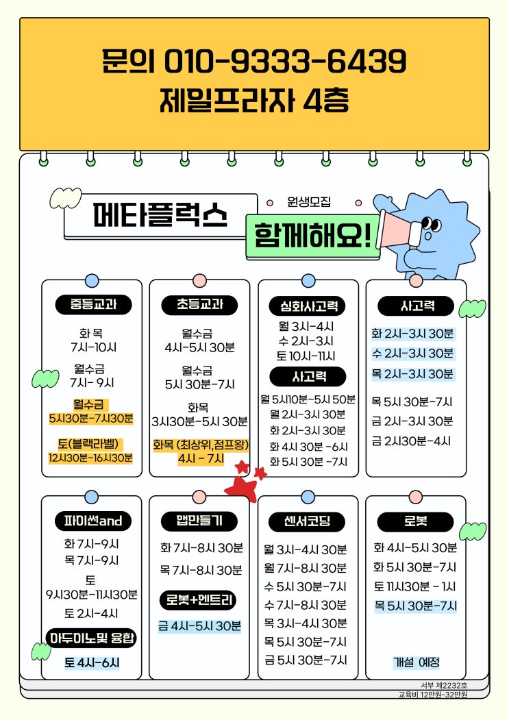드디어 기다리고 기다리던 2026학년도 왓슨어학원만의 특별 프로그램 "FINAL 자소서 + 면접 프로그램"을 개강합니다. 다년간 특목고를 보낸 입시 실적과 왓슨 입시연구소 매튜 부원장만의 노하우를 결합하여 준비하였습니다. 보다 자세한 사항은 블로그글을 참조해 주세요. https://blog.naver.com/watson1way/224058944502