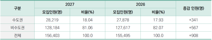 검단신도시 수학학원 입시학원 수학, 과학, 사회 입시는 프롬더클래스, 프더클입니다. <2027 학생부 교과 전형 안내 > 수도권에서 학생부 교과 전형의 비율은 늘고 있으나, 수도권으로 이야기하는 대학교의 비중을 확인할 필요가 있습니다. 특히 수도권이 경기도를 포함하기에 이러한 자료를 확인할 때 실질적으로 인서울 대학교의 인원 변화와 본인이 지원하고 싶은 대학의 모집 인원의 변화를 확인 하는 부분이 필요합니다. <각 전형별 모집인원 안내 > 학생부교과전형은 학생부 교과 성적을 50% 이상 반영하는 전형으로, 성적 산출 방식은 대학마다 다르며 과목 유형에 따라 차이가 있습니다. 일반적으로 공통과목과 일반선택과목....... <img src="https://blogthumb.pstatic.net/MjAyNjAzMjlfMTAx/MDAxNzc0NzUxNTEyMjcy.X8Yc9jV_RB97r3fIIuaoHXQpxvHgJxGQCBxwItc8JYUg.3YJyzKWggEU3G8PRP5VpL92dNAvEIewfRcIcGNpMPg0g.PNG/image.png?type=s3" />