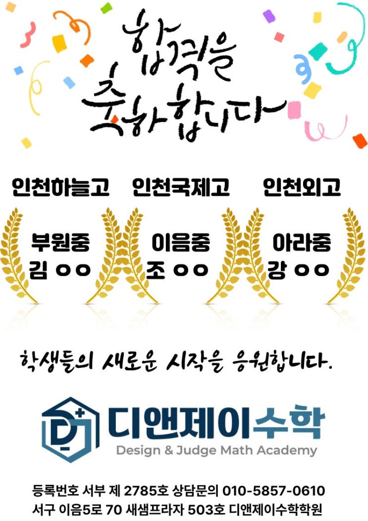 안녕하세요. 디앤제이수학입니다. 대학에 이어 고등학교의 합격자발표가 이어지고 있습니다. 특히 하늘고 합격자 학생의 경우 자소서부터 면접까지 모두 준비했던터라 기쁨이 더 크네요. 모두 합격을 축하합니다! <img src="https://blogthumb.pstatic.net/MjAyNTEyMzBfMTMz/MDAxNzY3MDc1MDg3ODY5.s6vUqYeGrfJA7w1Fj65Vhw3uZvxj34yjqHdXitBx-LQg.I5LktyqLoHXrSuXSgNW5iqLQGz6nrC6lzfpT7MlcPDog.JPEG/%C6%AF%B8%F1%C7%D5%B0%DD%C3%E0%C7%CF.jpg?type=s3" />