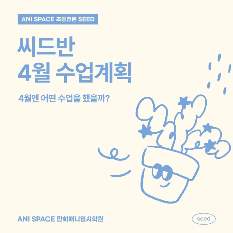 안녕하세요 애니스페이스 씨드반 4월 수업계획서로 인사드립니다! 봄이 시작되는 4월을 만끽하며 어떤 수업을 하는지 안내해드리겠습니다! ▼▼▼공지▼▼▼ 씨드반 4월 수업계획서 1주차_색연필 기초채색으로 색연필의 기본 사용법과 그라데이션 표현으로 실기력을 높일 수 있습니다. 2주차_ 색연필 응용 채색으로 과일의 색을 관찰하여 명암 표현 연습과 자연스러운 그라데이션 표현 능력을 키울 수 있습니다. 3주차_ 벚꽃나무 수채화 표현기법으로 벚꽃나무의 형태와 색상을 표현하는 능력을 키우고 다양하게 활용할 수 있습니다. 4주차_ 캐리커쳐 그리기 수업으로 인물의 특징을 직접 그려보며 자신만의 스타일을 찾는데에 도움이 됩니다. 4월....... <img src="https://blogthumb.pstatic.net/MjAyNjAzMzBfMjYg/MDAxNzc0ODcxMzYzMDQz.0CyzN2vBhdjrSoDrnfI8XHHHzfokfU_8xN_ceuEPWdUg.8Fs0h2G5VqJ--ufLfmjHU5xVbj3NobWt_Y9SovBehEYg.JPEG/26%B3%E2_4%BF%F9.jpg?type=s3" />