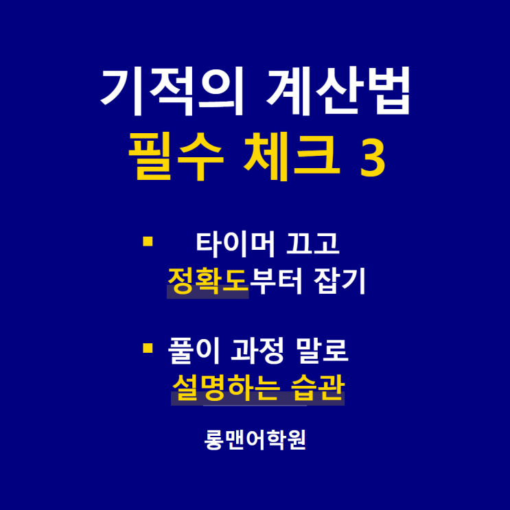 단순 반복이 아닌 '습관'의 형성 초등 수학의 기초 체력은 연산에서 시작된다고 해도 과언이 아닙니다. 시중에 많은 연산 문제집이 있지만, 그중 '기적의 계산법'은 단계별 반복 학습 시스템으로 많은 학부모님이 선택하는 교재입니다. 하지만 단순히 "하루에 몇 장 풀어라"라고 지시하고 채점만 하는 방식으로는 이 교재가 가진 효과를 100% 끌어내기 어렵습니다. 가정에서 이 교재를 활용할 때, 아이가 기계적인 문제 풀이가 아닌 수학적 사고의 기초를 다질 수 있도록 부모님이 체크해야 할 핵심 포인트 3가지를 정리했습니다. 속도보다 '정확도'가 우선입니다 이 교재의 가장 큰 특징 중 하나는 상....... <img src="https://blogthumb.pstatic.net/MjAyNjAyMDZfMiAg/MDAxNzcwMzYxNzkwMjYw.RPVQvhcYrRCisIDZ7Urmjp-GXzgPE-RE2sZo85AjMHog.ySVqxV133LAh03UfaL9QKXJJ6GdmK5-xnOWQevWzvfUg.PNG/slide_final_0.png?type=s3" />