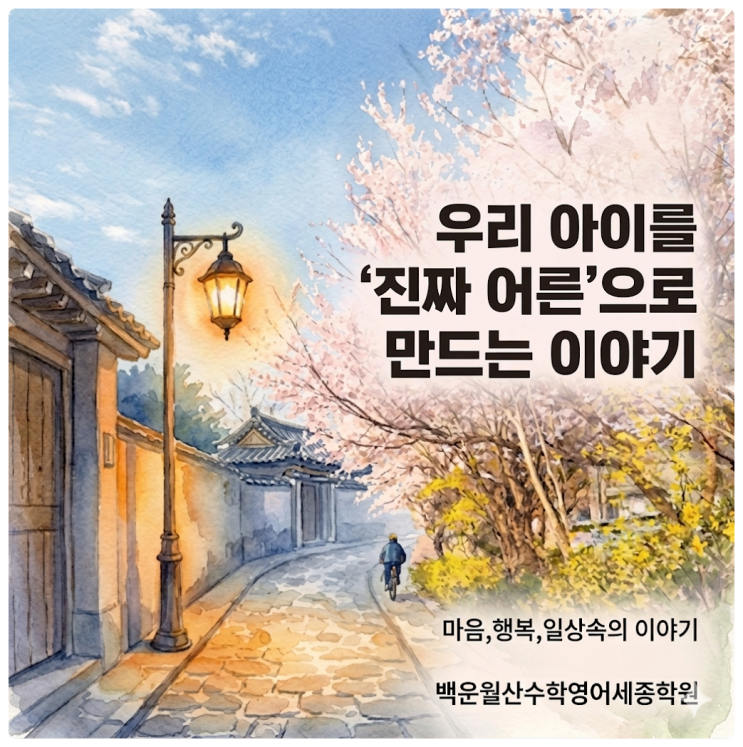 안녕하세요, 광주 남구 백운동에서 20년 넘게 아이들의 성장을 지켜보고 있는 백운월산수학영어세종학원 원장 최현진입니다. 오늘은 대성초, 백운초, 월산초 학부모님들과 조금은 무겁지만, 결국은 우리 아이를 '진짜 어른'으로 만드는 귀한 이야기를 나누어 보려 합니다. "무인점포에서 본 낯선 장면, 그리고 반전" 며칠 전 동네 무인점포 앞을 지나다 발걸음을 멈추게 한 장면이 있었습니다. 한 학생이 카드를 두고 나갔고, 마침 그 자리에 있던 저학년 아이가 그 카드를 주워 몇 가지 물건을 결제하는 일이 있었습니다. 잠시 후, CCTV를 확인한 카드 주인 어머님이 아이를 길에서 찾았고 마침 저는 그 자리를 지나는 길이....... <img src="https://blogthumb.pstatic.net/MjAyNjA0MDVfMTIz/MDAxNzc1Mzk4NTE5NjMz.ARAx8rziusO-D-I-7JGij2NR62zha4b9cCm1hlHtqpQg.dNkorCWuym2skbClLl-pagiQmEa9wjHauPAVNEm4vOMg.PNG/image.png?type=s3" />